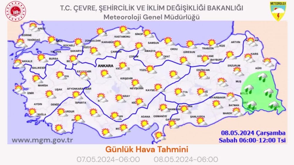 Meteorolojinin 8 Mayıs 2024 için hava tahmini şöyle: