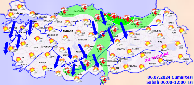 Parçalı ve çok bulutlu, aralıklı ve yerel olmak üzere sağanak ve gök gürültülü sağanak yağışlı geçeceği tahmin ediliyor. Yağışların, sabah ve öğle saatlerinde doğu kesimleri ile akşam saatlerinde genelinde yer yer kuvvetli olması bekleniyor.
