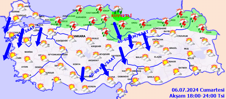 Parçalı ve çok bulutlu, bölge genelinin yerel olmak üzere sağanak ve gök gürültülü sağanak yağışlı geçeceği tahmin ediliyor. Yağışların; Samsun, Ordu ve Giresun çevrelerinde yer yer kuvvetli olması bekleniyor. Rüzgarın, Orta Karadeniz’in iç kesimlerinde kuzey yönlerden kuvvetli olarak (40-60 km/saat) eseceği tahmin ediliyor.
