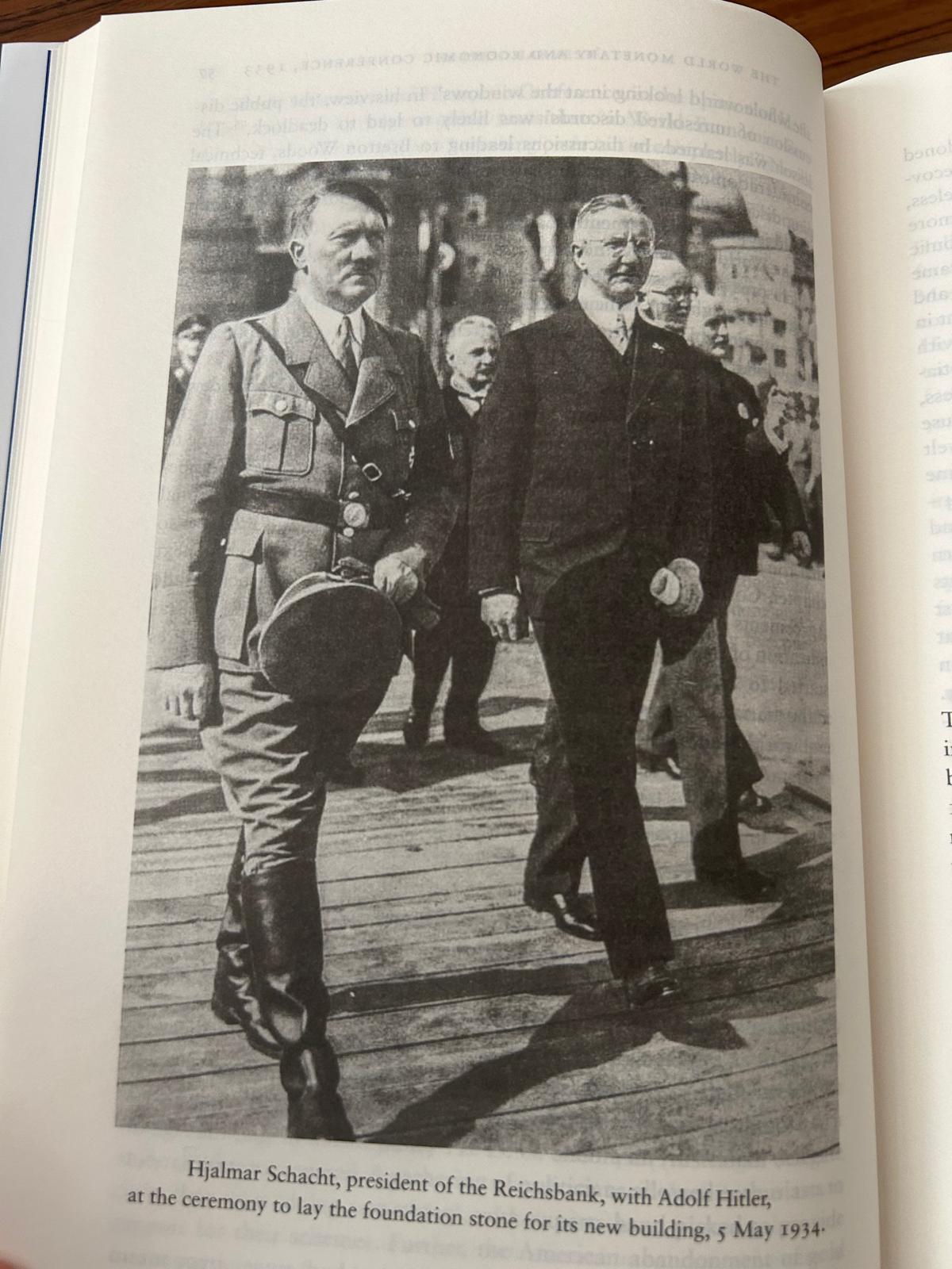 Bu kitapta 2 Dünya Savaşı’nı çıkararak dünyayı kana bulayan Alman siyasetçi Adolf Hitler ile dönemin Alman Merkez Bankası “Reichsbank” ın Başkanı Hjalmar Schacht ikilisinin, 5 Mayıs 1934 tarihinde katıldıkları bir törende çekilen fotoğrafları; lideri kopyalayan bürokratları ve tektipleşen Hitler faşizmini özetliyor.