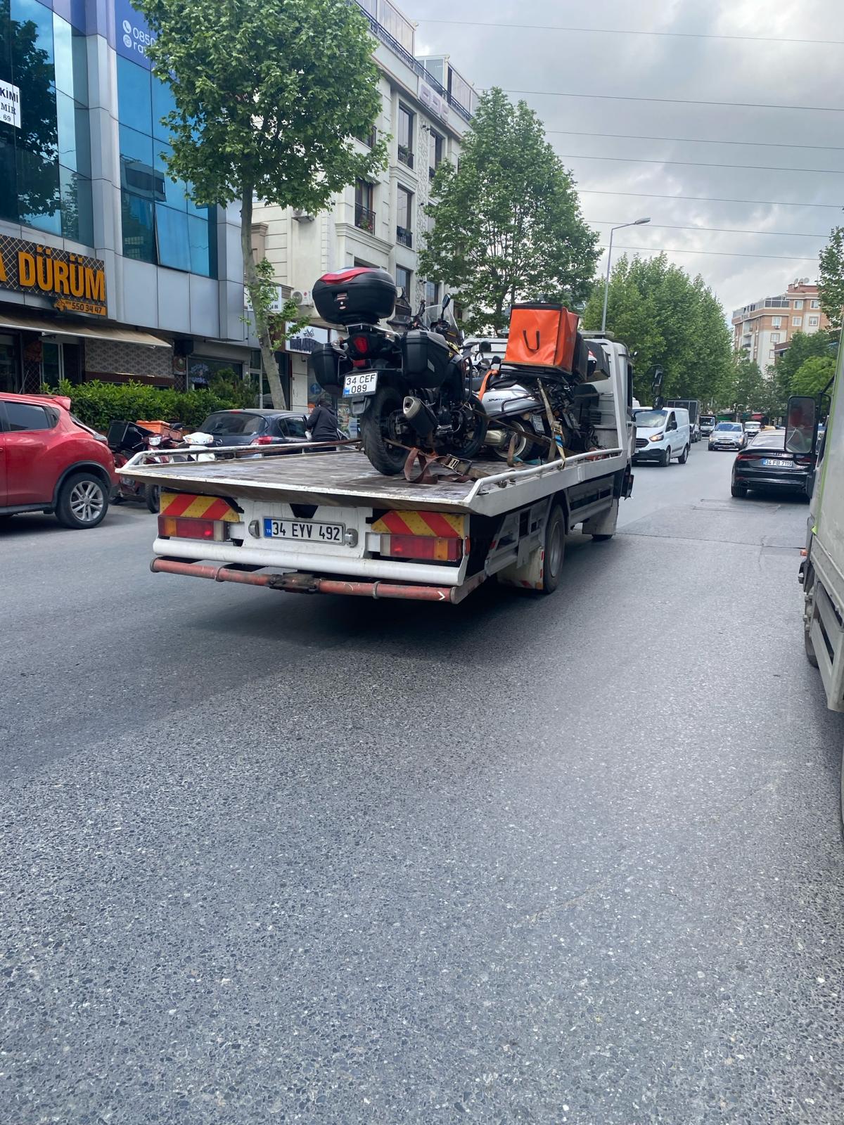 MOTOSİKLETİ BAĞLANAN SÜRÜCÜDEN ÇEKİCİ UYGULAMASINA TEPKİ